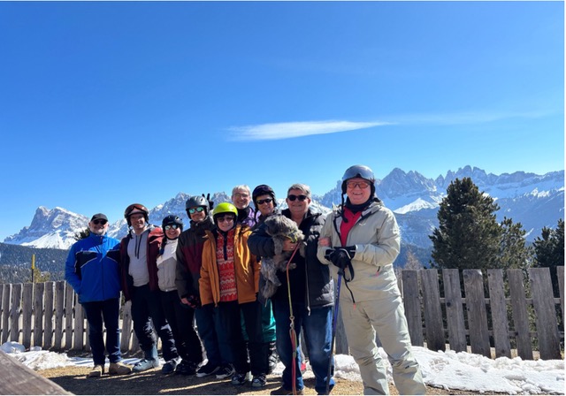 Das Bild der Teilnehmergruppe entstand auf der Terrasse einer der zahlreichen Hütten im Skigebiet vor dem beeindruckenden Panorama der Geislergruppe. Klar, dass wir vor der Heimfahrt auch für nächstes Jahr das Hotel gebucht haben. (ur)